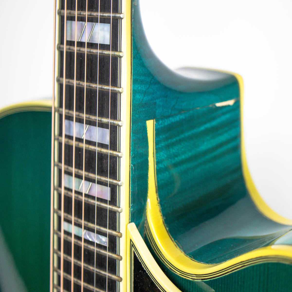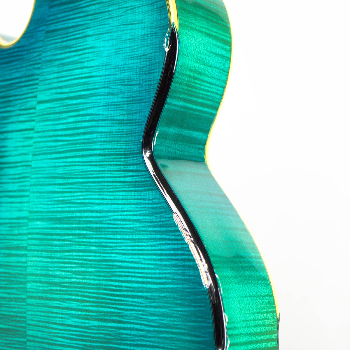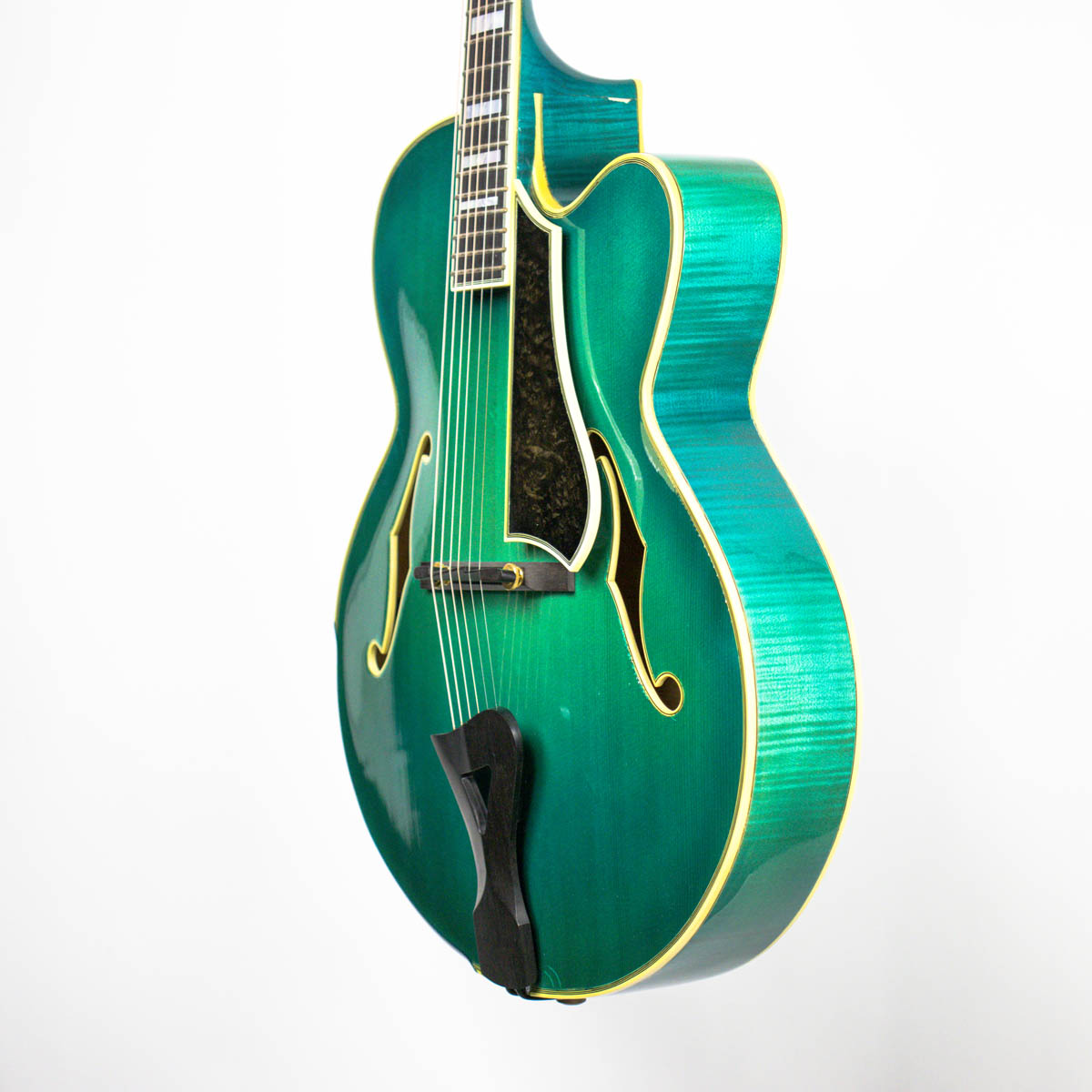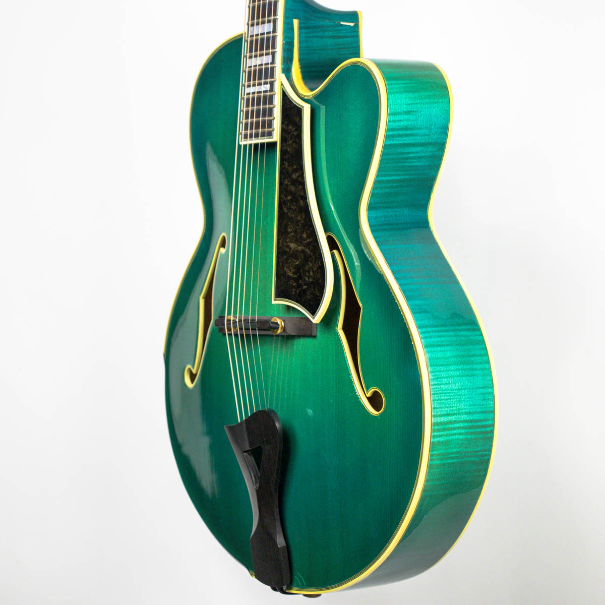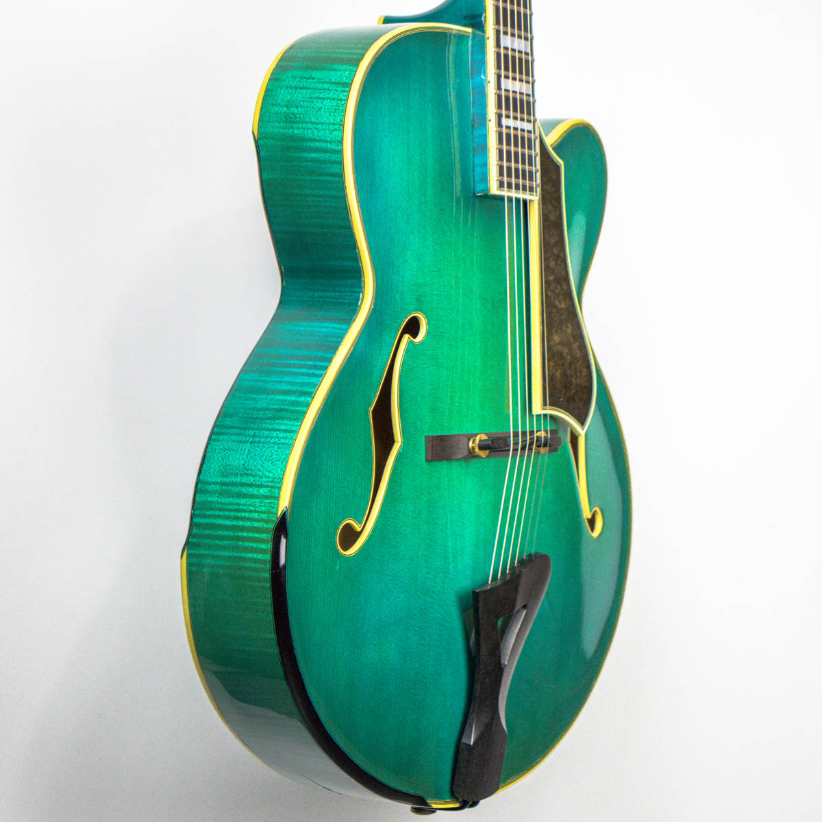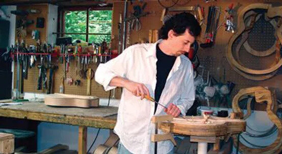Guided by the works of great guitar makers past and present, Bill has devoted much time and attention to key elements of the process such as wood selection, the modeling and graduation of the arched plates, the mass of individual components, sound-hole styling and placement, variables in geometric relationships, and the interaction with electronic amplification. By fine-tuning his techniques to meet the objectives of each custom-build, Bill has gained a deep understanding of how individual components function in concert with each other and how they can be manipulated to craft instruments of distinction. Like Buscarino, Comins also studied under Robert Benedetto and built his first archtop with Benedetto in 1991.